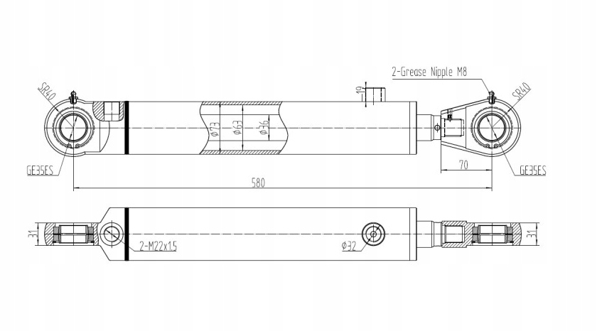 Гідравлічний поршень 63x36 Стрибок 300 мм. Двосторонній.