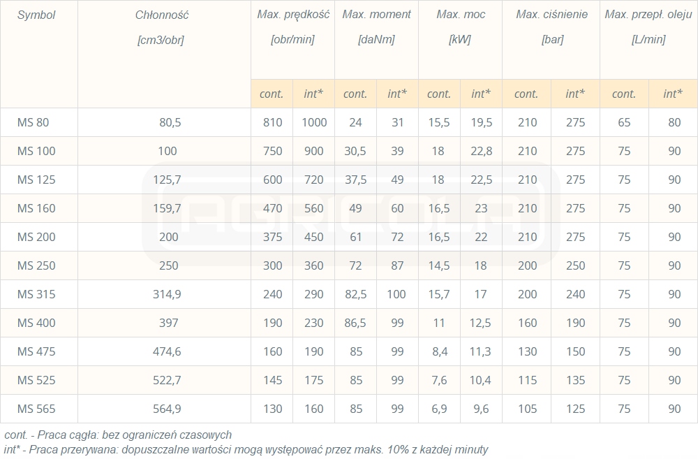 Конструкція Двигуни MS засновані на системі GEROLLER, яка складається з використання посилених роликових підшипників всередині. Ролики забезпечують найвищу стійкість до перевантажень і тривалий термін служби двигуна. Роликові двигуни рекомендуються для систем, які працюють у важких умовах, при тривалій безперебійній роботі в сільському господарстві та промисловості.