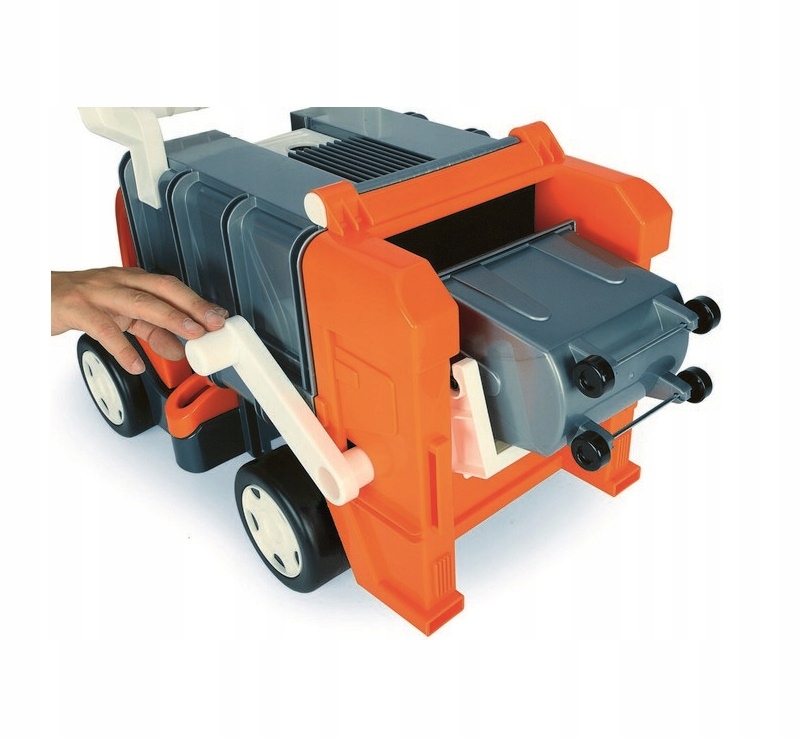 Іграшка повністю функціональна завдяки рухомим елементам, з можливістю завантажувати контейнер, прикріплювати сміттєвий бак і відкривати задню кришку контейнера.
