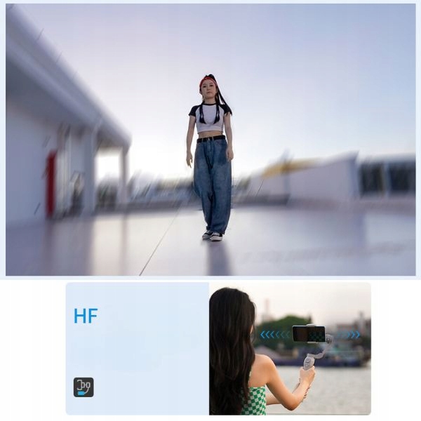 - Half Follow (HF): вісь обертання (Roll) і вісь нахилу (Tilt) є заблокована. Вісь горизонтального обертання (Pan) плавно обертається разом із рухом ручки. Це означає, що камера залишається нерухомою та стабільною, вона не може стежити за рухом ручки.