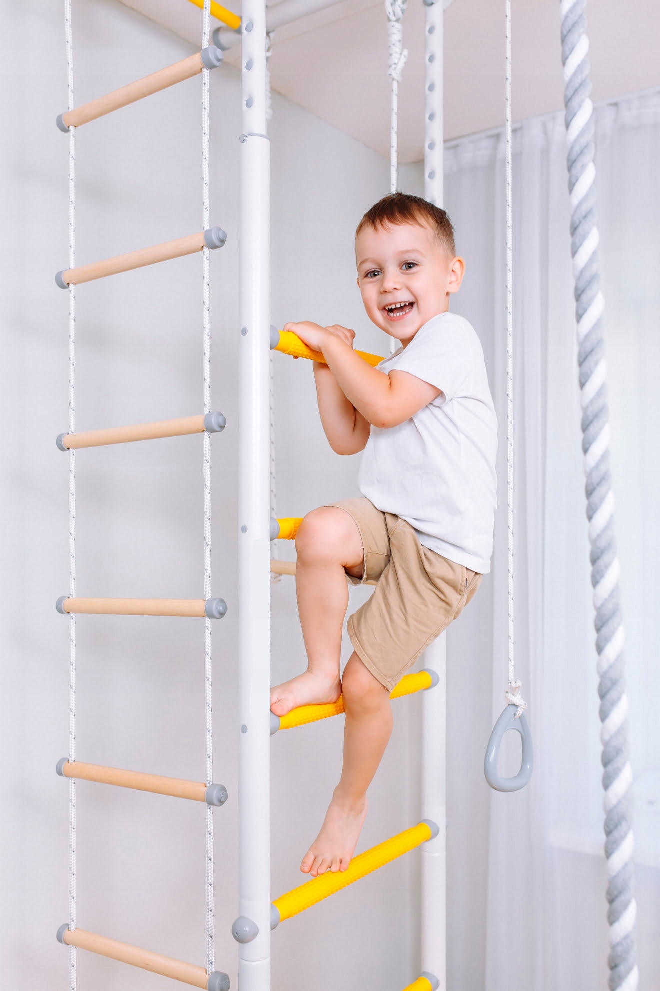 Гімнастичні драбини характеризуються унікальним покриттям ступенів, які, окрім стандартних протиковзких шин, також мають виступи, які масажують дитину. руки і ноги під час лазіння. Масажний ефект особливо важливий на ранніх етапах розвитку дитини - він сприяє розвитку дрібної моторики та запобігає плоскостопості.