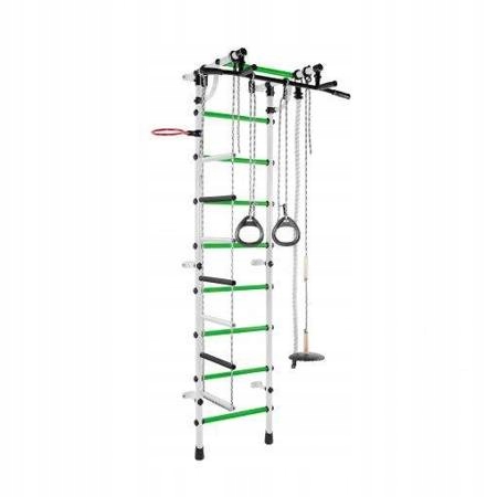 Драбинка гімнастична підходить для дитячих вправ, для кріплення на стіну, набір складається з драбини, мотузкової драбини, нековзної планки, канату, кільця гімнастичного, гойдалки та баскетбольного кільця.
