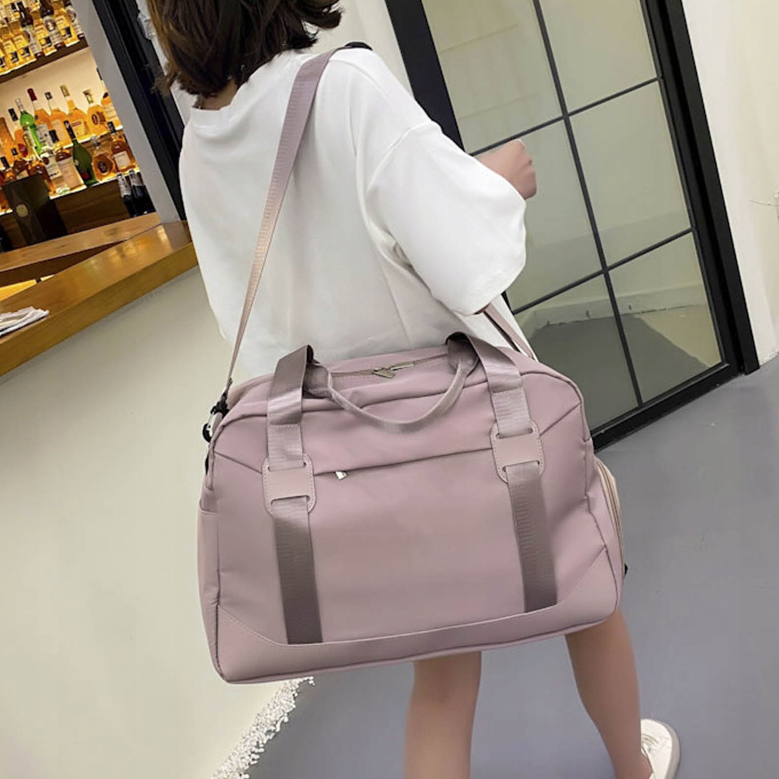 1. Нейлона Будівництво великої потужності: Завдяки просторому дизайну, ця сумка підійде до вашого одягу, взуття та інших необхідних речей, що робить його комфортним під час довгих подорожей та спортивних заходів. Ергономічний дизайн: Рюкзак має ергономічний дизайн, який забезпечує комфорт при носінні. Регульовані плечі роблять його придатним для людей різної висоти та типу структури ЦРУ. Стильний рожевий дизайн: Завдяки чарівному та елегантному рожевому житлу, ця спортивна сумка ідеально підходить для подарунка для друзів, матері, дочки тощо. Це модно та практично. Сценарії універсального використання: Цей багатофункціональний мішок для подорожей, фітнес та спортивна сумка підходить для різних випадків та занять.
