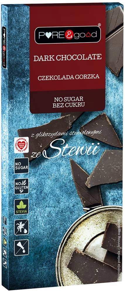 Чорний шоколад без цукру з еритритом і стевією 100 г Pure&Good