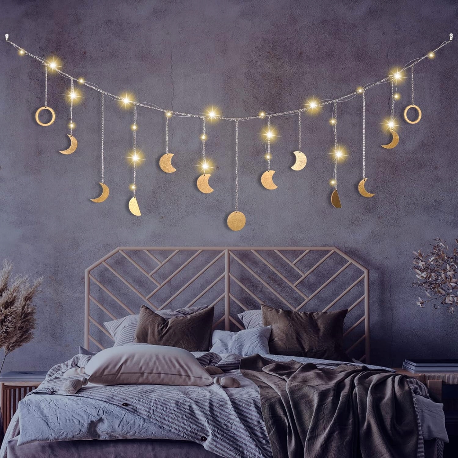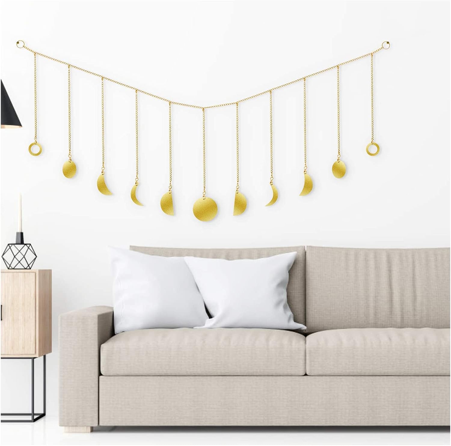 Suprcrne Moon Phase Гірлянда з ланцюжками Настінні прикраси, Оригінальний Бохо Золотий Сяючий Настінний Мистецький Декор Кімнати для Весілля Домашній Офіс Дитячі Орнаменти (у формі Місяця)
