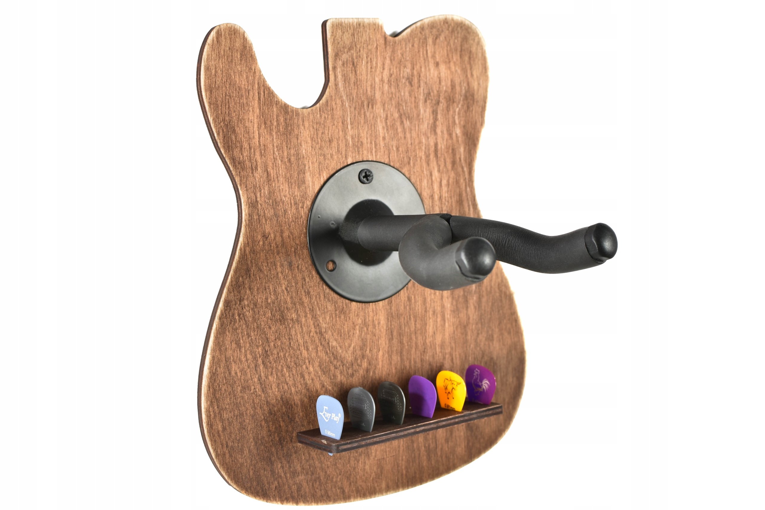- Універсальна настінна вішалка, підходить до більшості акустичних, класичних, електричних гітар, басів та інших струнних інструментів, таких як укулеле або банджо.