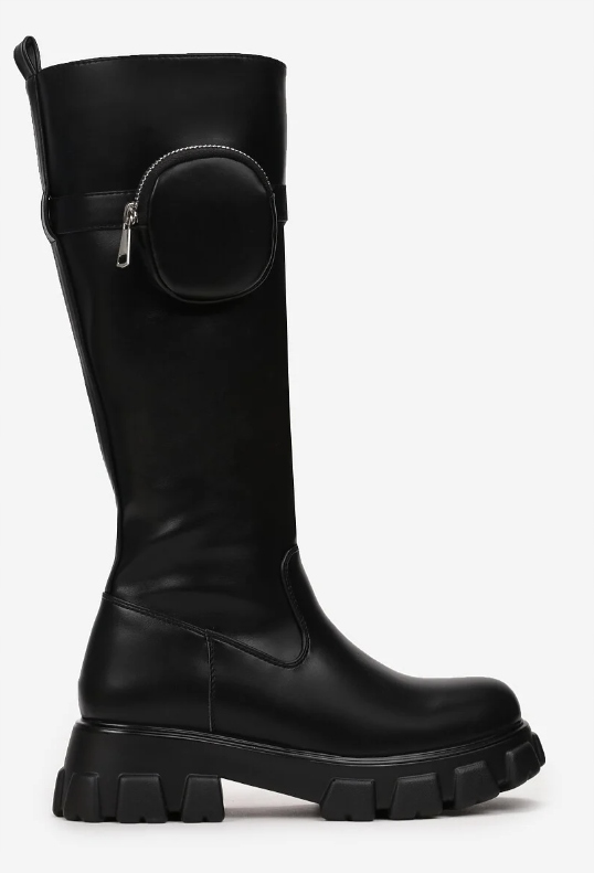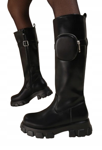 ГЛАДКІ ЧОРНІ ВИСОКІ СУМКИ -37- ЧОБОТИНКИ З СУМКОЮ НА ПЛАТФОРМІ