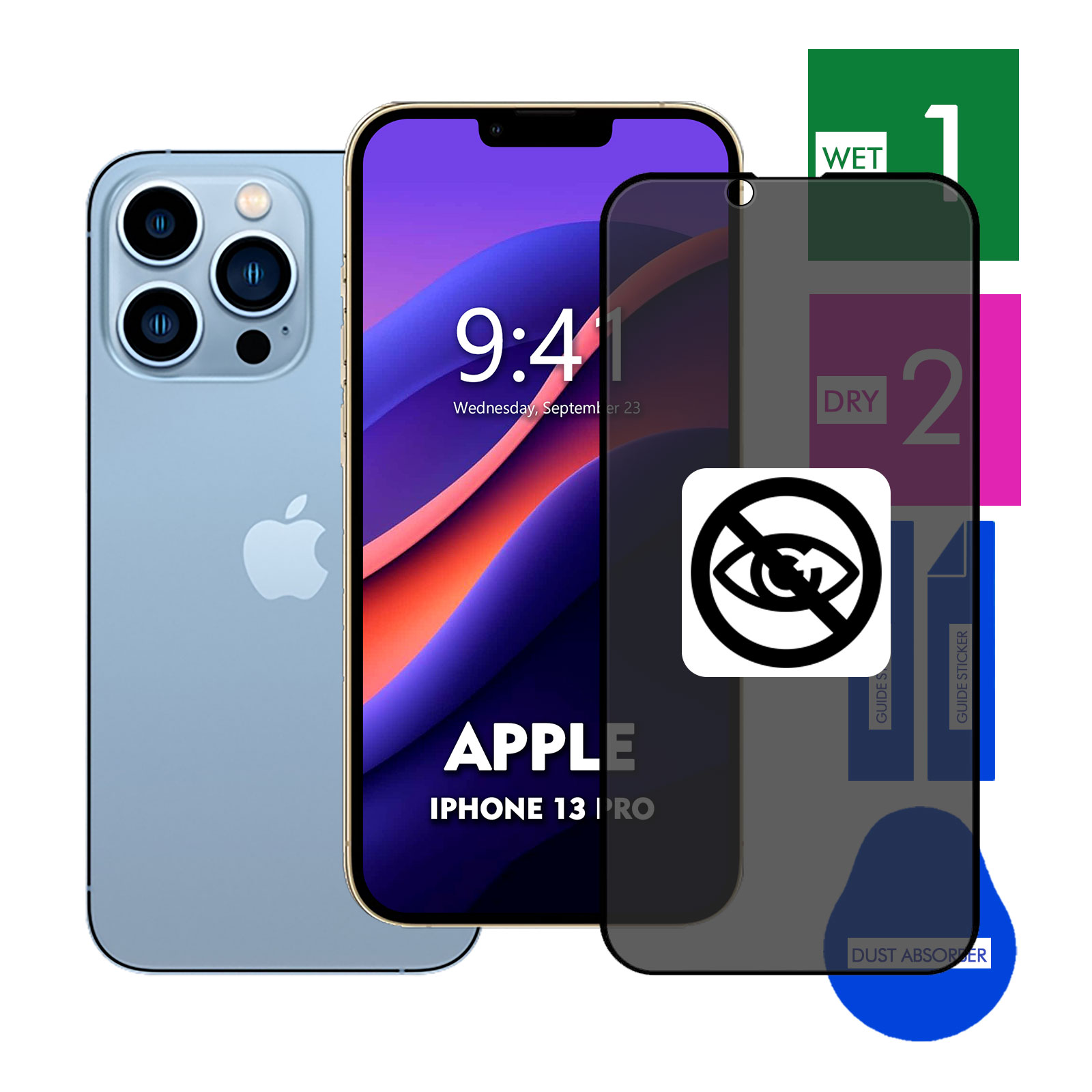 Не турбуйтеся про те, хто дивиться на ваш екран Apple iPhone 13 Pro ! Наші 5D -конфіденційність загартованого скла ефективно захищає ваші дані від поглядів. Завдяки вдосконаленій технології проти SPY, екран стає невидимим під кутом, що перевищує 30 °, що дає вам вдвічі більше конфіденційності порівняно з іншими продуктами.