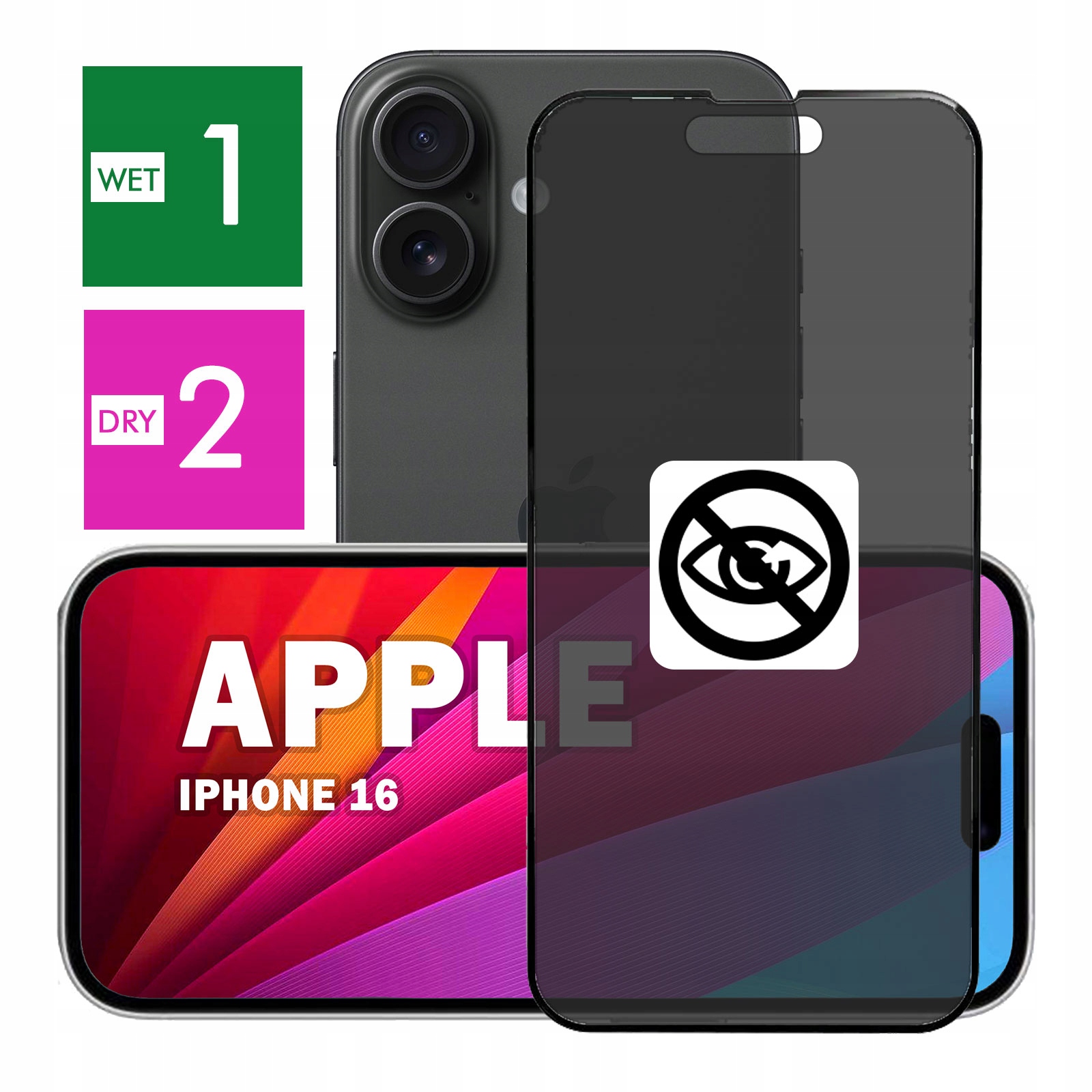 - ✅ 5D Конфіденційне загартоване скло присвячений Apple iPhone 16