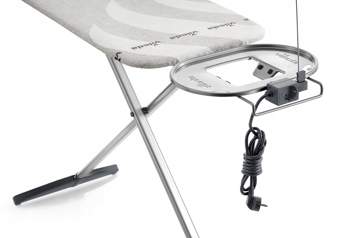 Зручна, комфортна та стійка Прасувальна дошка Vileda Total Reflect Plus з регулюванням висоти, з електричною розеткою та підставкою для праски.