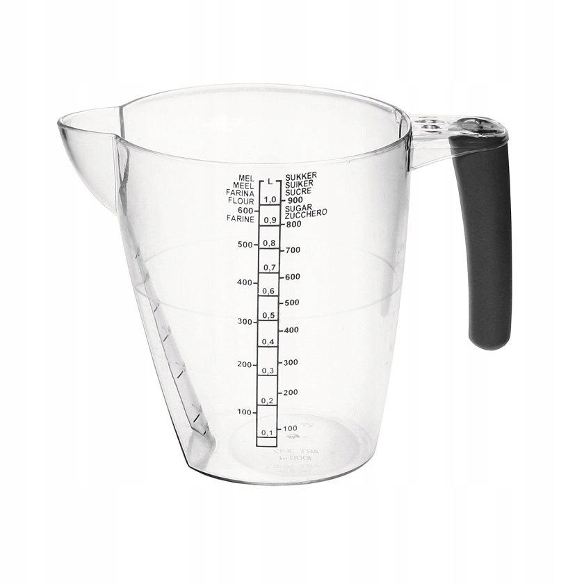 Глечик має 50 г для борошна та цукру та кожні 50 мл для рідин.