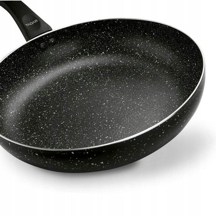 Велика антипригарна сковорода з кришкою Tadar Marmara Black 28 см виготовлена з легкого алюмінію. Це означає, що він нагрівається рівномірно і швидко. Його індукційне дно допомагає в цьому, оскільки воно дуже добре працює на будь-якому типі плити. Всередині сковорода покрита міцним антипригарним покриттям. Завдяки цьому смажені інгредієнти не прилипають, і ви можете готувати здоровіші страви з меншою кількістю жиру. Великий діаметр посудини дозволить приготувати страву для всієї родини. Високий край полегшує перемішування їжі під час смаження. Ручка мармурової індукційної сковороди Marmara Black добре лежить у руці. Це також допоможе вам безпечно зняти блюдо з плити та перемістити його. Ви можете доглядати за ним щодня без будь-яких зусиль і скрабування. Скляна кришка, що входить у комплект, дозволяє тушкувати вечерю.