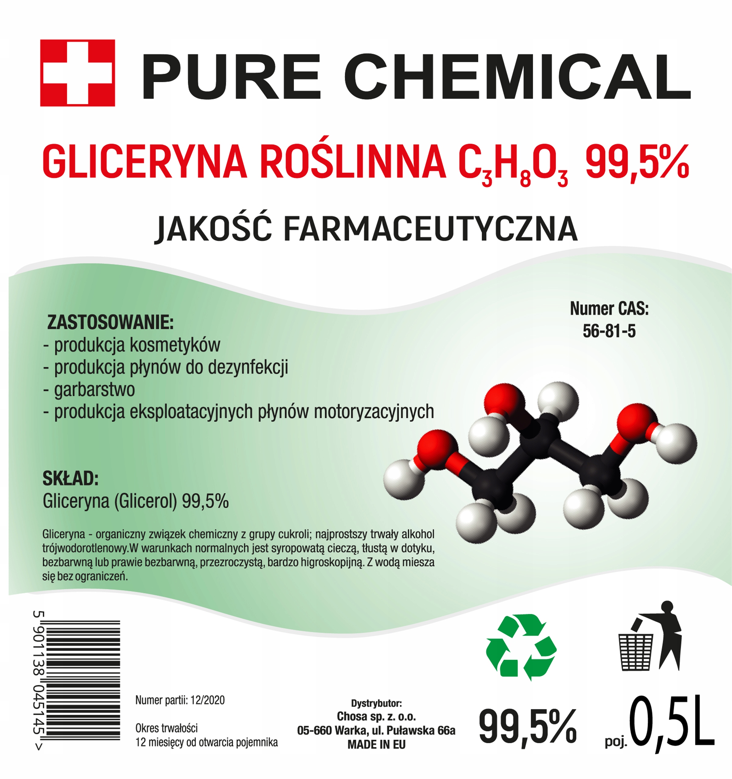 - рослинний гліцерин VG фармацевтичної якості 0,5 л