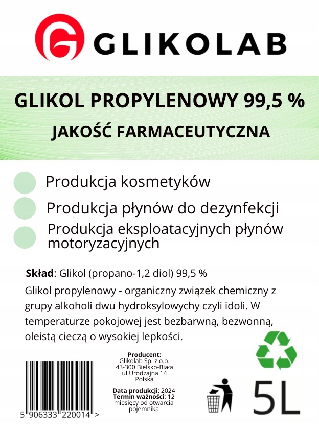 GLIKOL PROPYLENOWY FARMACEUTYCZNY 99,5% 5 l
