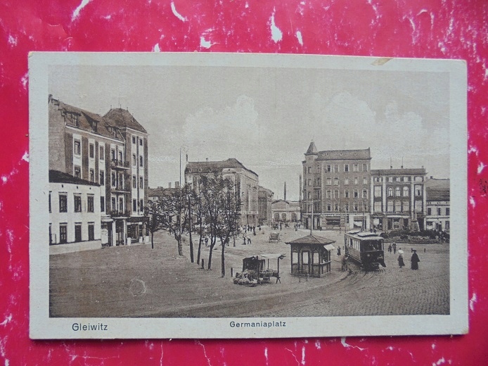 GLIWICE GLEIWITZ ZABRZE GERMANIAPLATZ ТРАМВАЙ ПАНОРАМА БЕЗ ЦИРКУЛЯЦІЇ ПИСЬМОВИЙ СТАН НА ФОРМАКУ ЧУДОВА ЛИСТІВКА ЕПОХИ МОЖЛИВІСТЬ ОПЛАТИ ТРАДИЦІЙНИМ ПЕРЕКАЗОМ ING BANK ŚLĄSKI