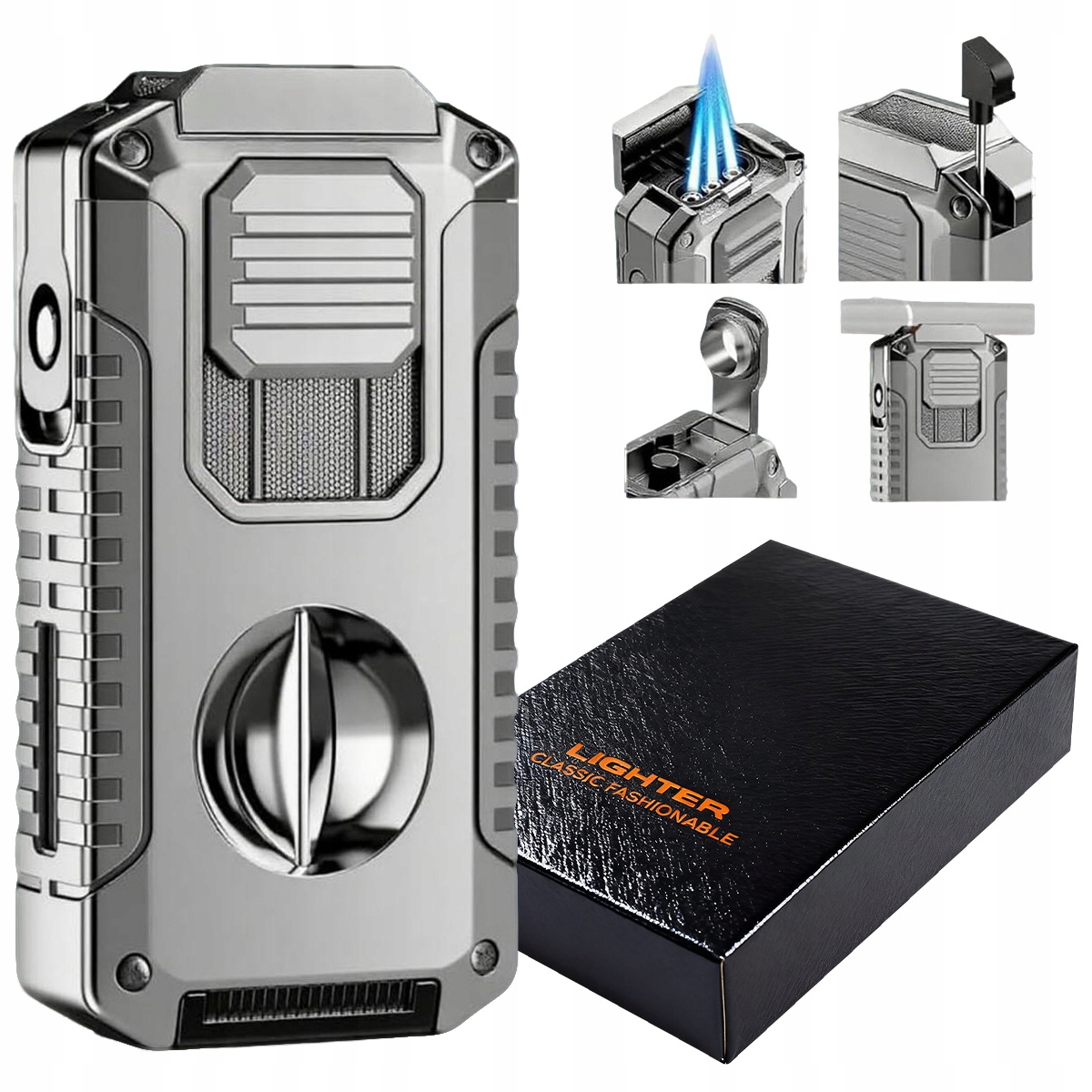 Ця універсальна запальничка оснащена V-подібною виїмкою та дироколом. V-подібний розріз характеризується точно профільованим лезом, що забезпечує оптимальну глибину різу. Діркопробивач дуже міцний і легко прорізає отвори діаметром до 0,8 см / 0,32 дюйма. Ці професійні аксесуари забезпечують ефективне та зручне використання для ентузіастів і гарантують найвищу якість продукції (Примітка: запальничка не містить бутану).