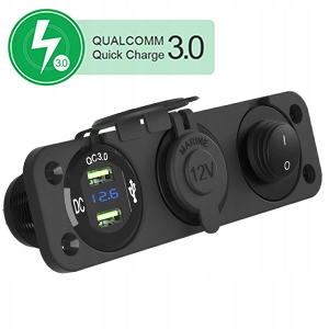 - Автомобільний USB-роз’єм QC 3.0 12 В зі світлодіодним вольтметром, розгалужувач прикурювача, незалежний перемикач ON/OFF, 2 USB-роз’єми