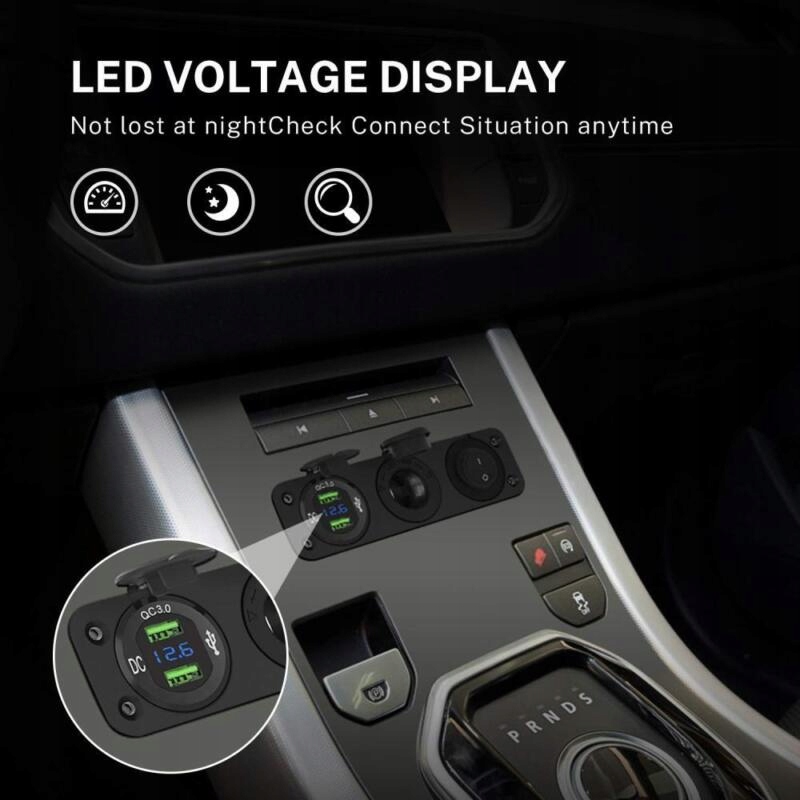 🌟【Світлодіодний індикатор напруги】 Розетка живлення QC 3.0 USB 12V RV із вбудованим цифровим світлодіодним монітором напруги показує стан напруги акумулятора автомобіля в режимі реального часу щоб уникнути проблем, викликаних низькою напругою. Він також може нагадувати вам, коли напруга буде на нормальному рівні, щоб забезпечити безпечне керування. Виготовлений з високоякісного матеріалу PA, матеріалу CSA та якості PA66. Стійкий до високих температур, зносу та окислення.
