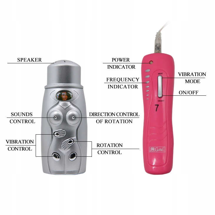 Характерною деталлю цієї моделі є два пульти дистанційного керування, які керують блоками вібрації, рівнями обертання та звуком.