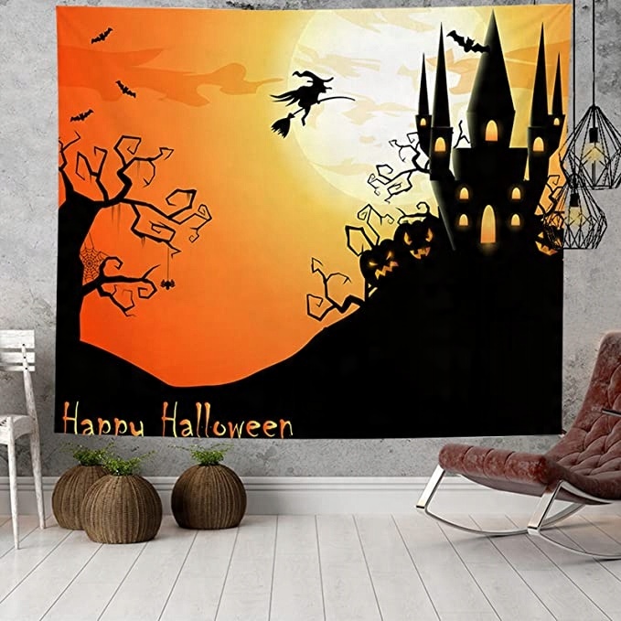 Танґерський гобелен на Хеллоуїн, повний місяць, настінні гобелени, гарбуз, чорні кажани, настінний килимок для декору стін вітальні, спальні, гуртожитку, 130x150 см