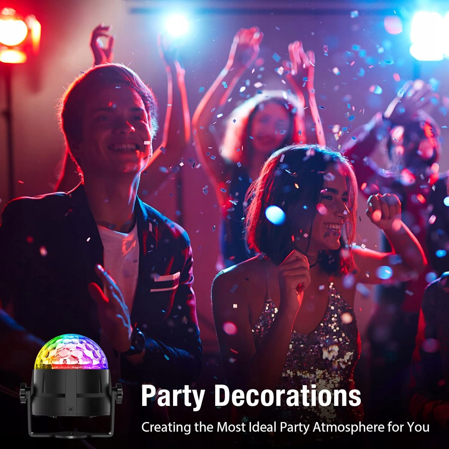 - Більш чутливе керування музикою - на відміну від інших дискотечних джерел світла 70 дБ, лише 48 дБ може викликати зміни світла та швидкості. Дискотечна куля танцює під музику та навіть під сміх дітей, плескання в долоні чи співи, тож вам не потрібно розташовувати її поруч із динаміком.