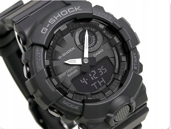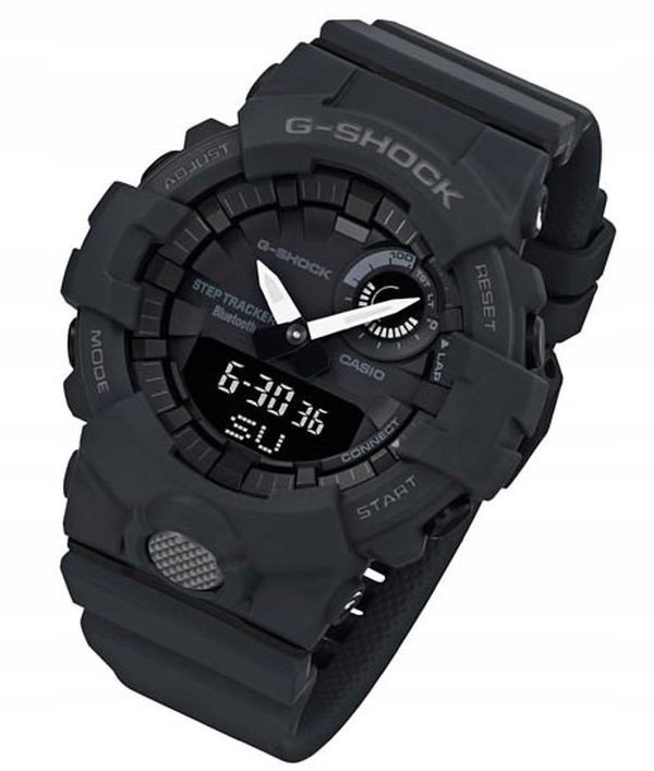 CASIOG-SQUAD GBA-800-1A це протиударний годинник, створений групою вчених. Головною метою Casio було створити годинник, який неможливо знищити. Протиударна система G-Shock захищає його від ударів і ударів. І корпус, і ремінець виготовлені з чорного пластику. Що відрізняє годинник від інших, так це функції розумного годинника та підключення до телефону через Bluetooth. Підключивши годинник до телефону через додаток, ви отримаєте доступ до тренувальних функцій. Водонепроникність 200 м дозволяє носити годинник під час плавання та пірнання.