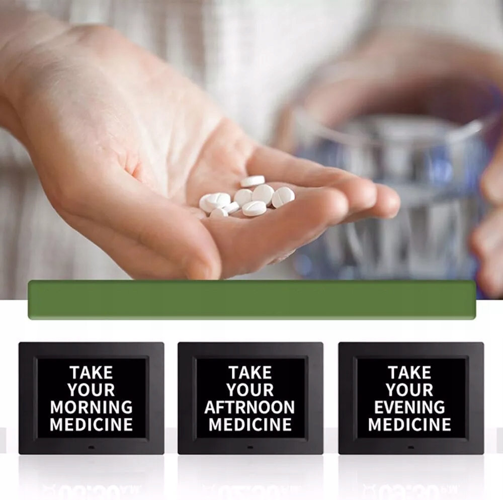 Цифровий будильник має 5 звичайних будильників і 3 будильники про прийом ліків, а також ранковий, денний, вечірній і вечірній будильник із нагадуванням про прийом ліків, що стане в нагоді у разі втрати пам’яті чи погіршення зору. Людям похилого віку, хворим на деменцію, хворобу Альцгеймера приймати ліки, щоб не пропустити інші важливі події.