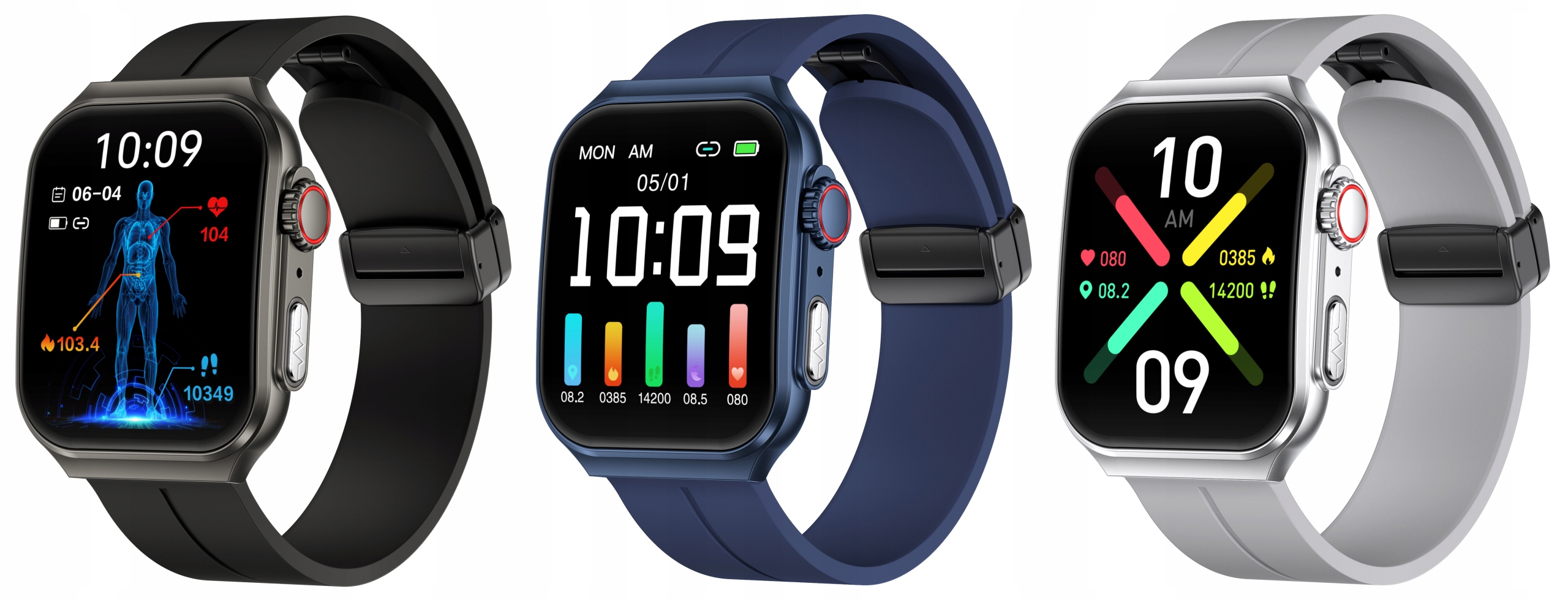 Годинник оснащений IPS HD сенсорним екраном останнього покоління з діагоналлю 1,96" E2E (від краю до краю) з роздільною здатністю 320X386 пікселів і кут огляду 178 градусів. У меню кожного годинника є 10 змінних циферблатів на вибір, а решта понад 150 можна завантажити через додаток. Він має 3-осьовий G -Сенсор руху, завдяки якому b>коли ви піднімаєте руку, екран автоматично прокидається і ви можете бачити час та іншу інформацію.Після сполучення годинника з телефоном , він також відображає інтелектуальні сповіщення про повідомлення або дзвінки, додатково вібруючи. Вам навіть не потрібно діставати телефон із кишені, щоб побачити, чи хтось вам дзвонить або прочитайте повідомлення! Спробуйте, і ви побачите, наскільки це зручно. Завдяки простому та інтуїтивно зрозумілому меню зображень керувати ним дуже легко та приємно, а крім того, це на польській мові!