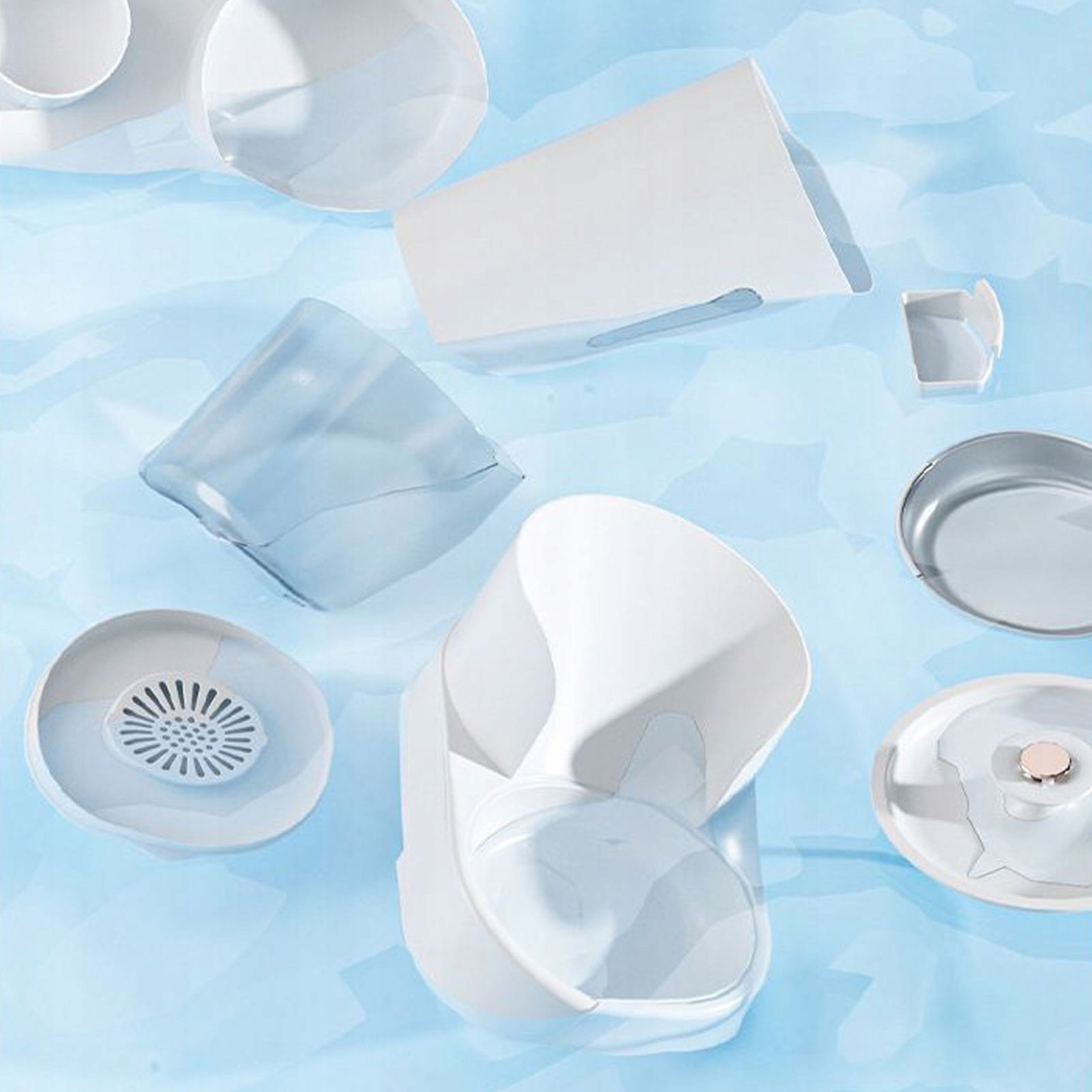 4. Інтегрована конструкція, що заощаджує простір: завдяки елегантному та компактному дизайну цей пристрій для годування води та фонтан економить простір і додає естетичного шарму вашому дому, роблячи його придатним для будь-якої кімнати чи куточка.
