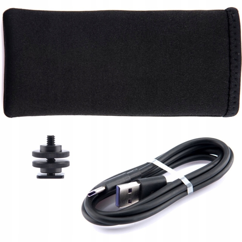 Панель Godox M1 RGB Mini LED має інтегровану, зчленовану складку, що містить 1/4 "-20, дозволяє встановлювати в різних положеннях. Це також вбудований мікрофон для використання музичного режиму, що дозволяє змінювати світло на ритм музики. Інтегрована батарея 2410 MAH завантажується з приєднаним USB-кабельним кабелем Тип С і працює близько 2,5 годин зі 100% потужністю. TLCI 97