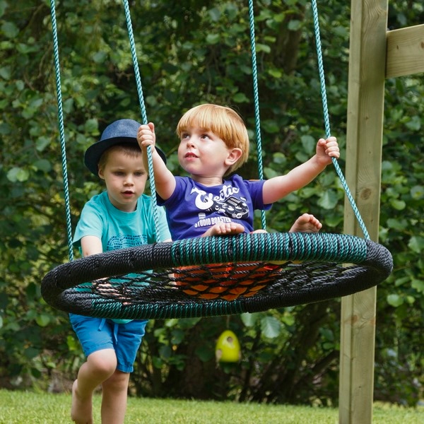 гойдалка лелека. Овальна розетка - це чудова гойдалка для одного або кількох дітей. Матеріал, який використовувався для виробництва лелевого гнізда, безпечно поглинає вплив дитини неконтрольованими аваріями. Розетка лелека оснащена металевим колесом для кріплення.