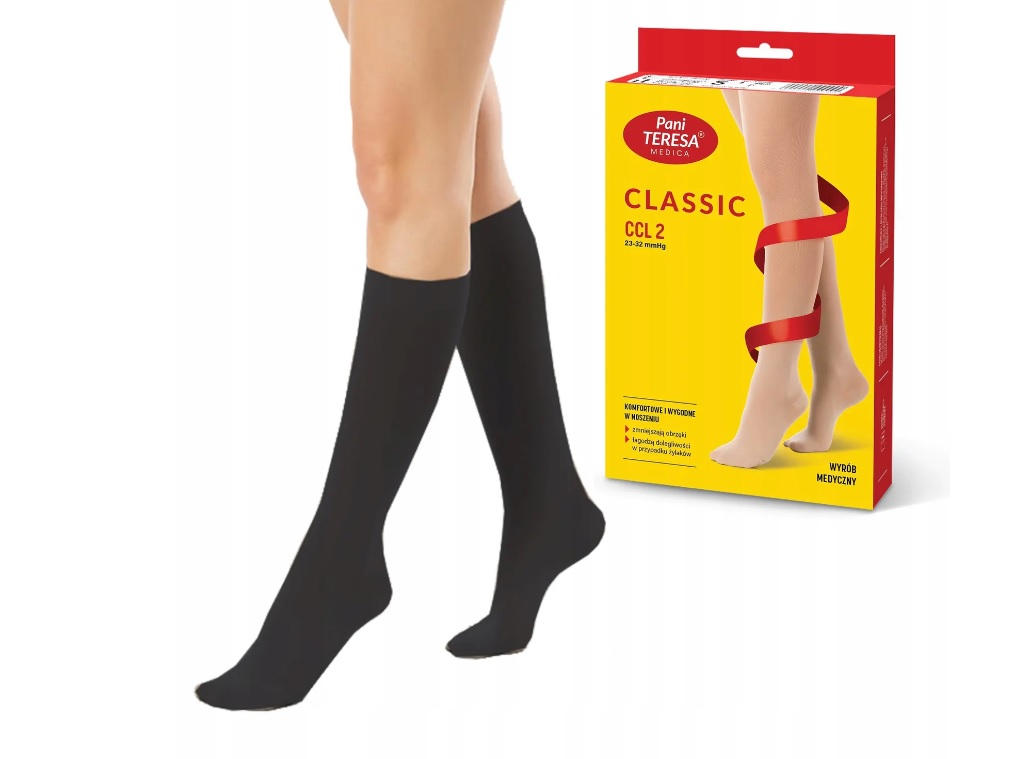 Компресійні шкарпетки PANI TERESA CLASSIC CCL2 з тиском 23-32 мм рт.ст. рекомендуються під час компресійної терапії. Гольфи слід надягати вранці, по можливості після пробудження, і носити протягом дня.