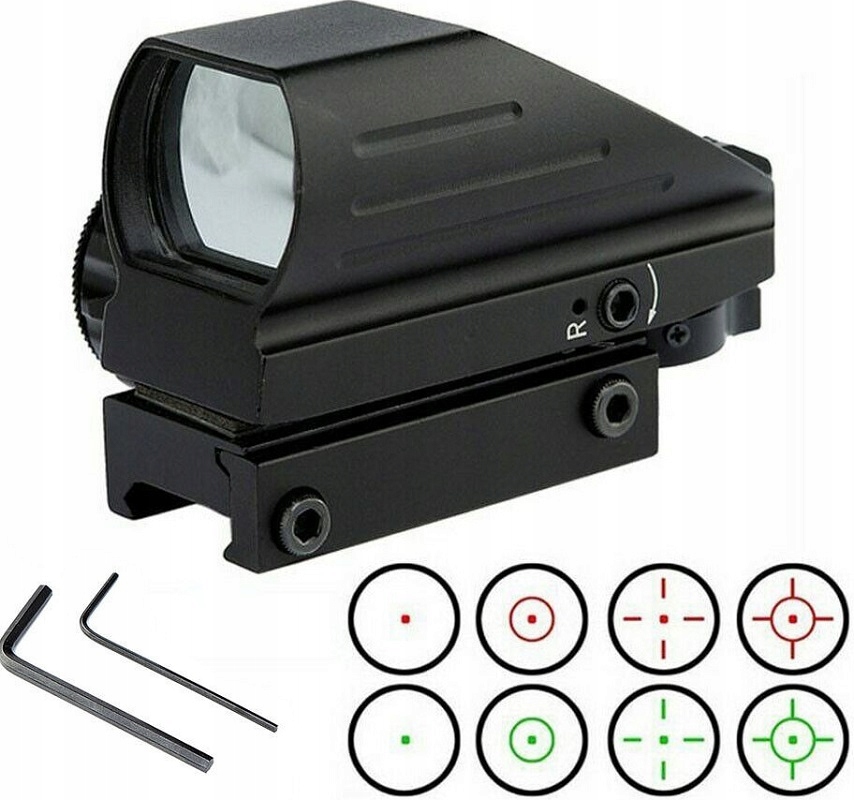 Точка прицілювання може можна регулювати по вертикалі та горизонталі, а також має кілька рівнів інтенсивності світла.