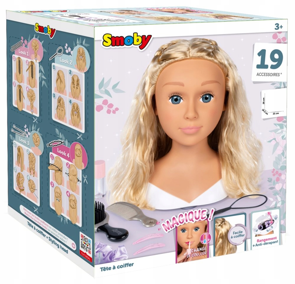 Smoby Blonde Styling Head дозволить дівчині поринути в захоплюючий світ зачісок і реалізувати свої творчі ідеї. Завдяки міцному таультрам'якому нейлоновому волоссю можна легко створювати коси та пучки!