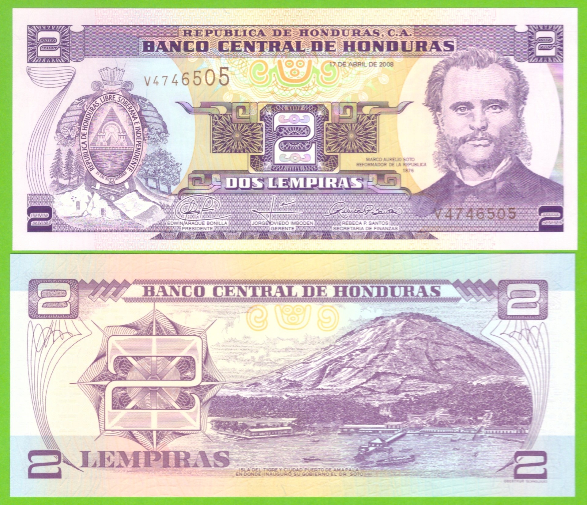 ГОНДУРАС 2 ЛЕМПІРА 2008 P-80Ag UNC