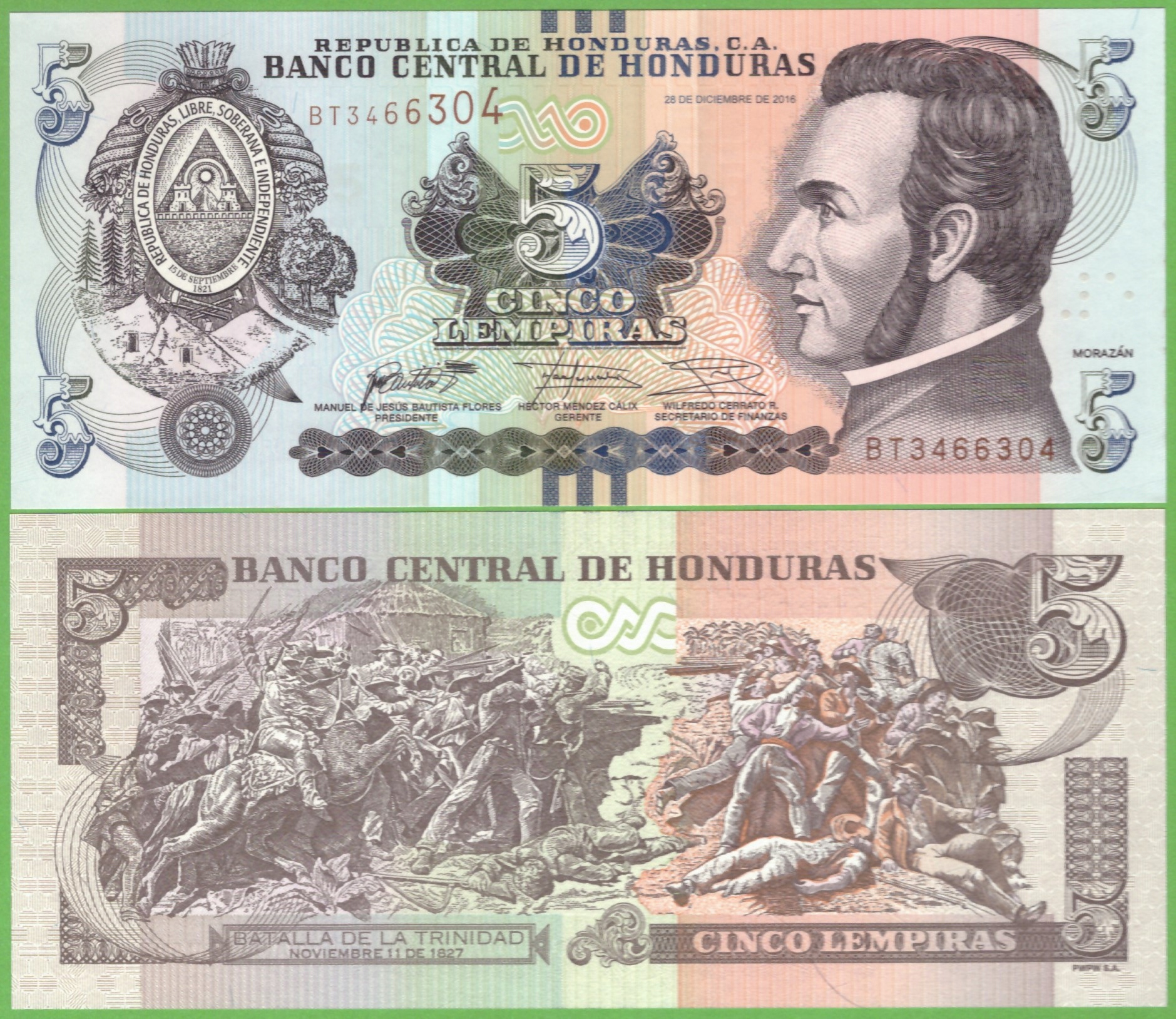 ГОНДУРАС 5 ЛЕМПІРА 2016 P-98 UNC PWPW ВИДАННЯ