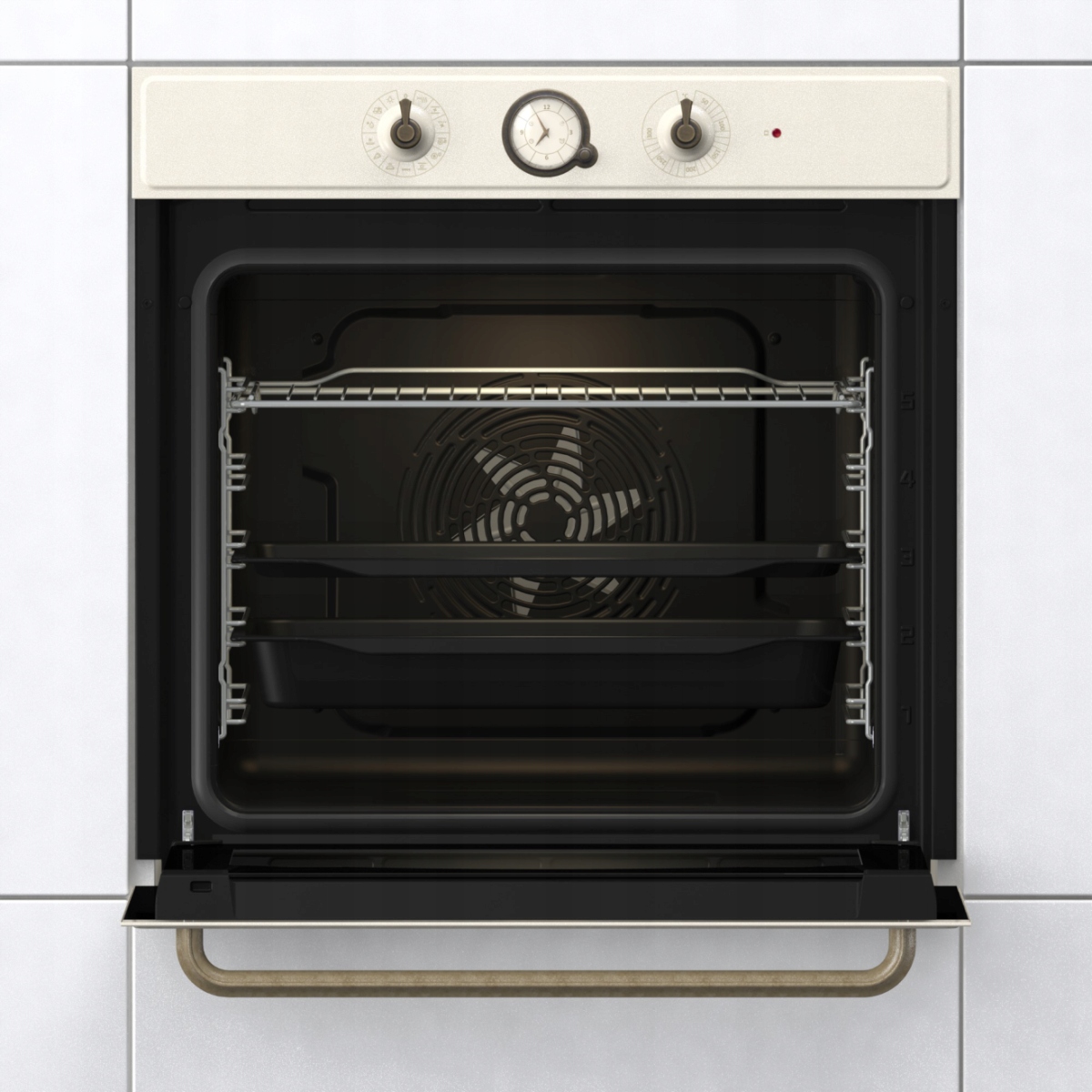 Готові до рецептів XXL? Інноваційне дизайнерське рішення Gorenje BigSpace означає збільшення внутрішнього простору та повне використання ширини духової шафи. На кожному деку більше місця, а відмінна технологія забезпечує рівномірне приготування їжі на всіх рівнях.