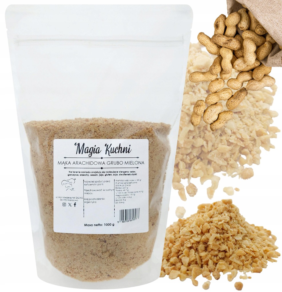 грубо мелене лущення - це надзвичайно універсальний продукт, який збагатить багато страв його горіховою нотою. Завдяки високому вмісту білка та волокна - це чудовий вибір для людей, які шукають здорові альтернативи в раціоні. Ідеально підходить для випічки, коктейлів або як компонент сухарів, що дають посуд хрусткість та унікальний смак. Більше того, його натуральні харчові властивості означають, що арахісове борошно може стати улюбленим інгредієнтом кухні людей на веганській та вегетаріанській дієті.