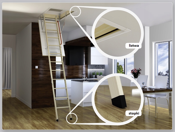 Сходи поєднують в собі переваги функціональності, теплових параметрів і високої довговічності за оптимальною ціною. Сходи забезпечують легкий і безпечний доступ на горище або мансарду.У складеному стані вони ховаються в стелю, не займаючи місця в кімнаті.