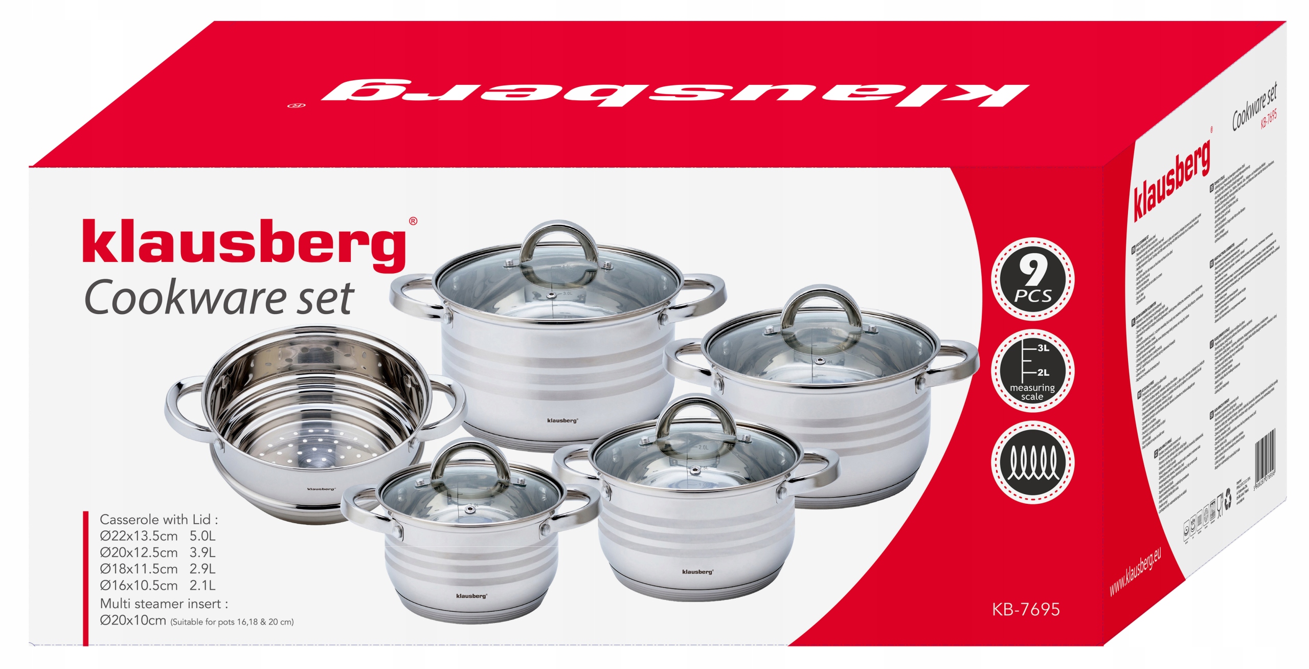 НАБІР ГОРЩИКІВ 9 шт. Індукційна система з НЕРЖАВІЮЧОЇ СТАЛІ з паровою вставкою
