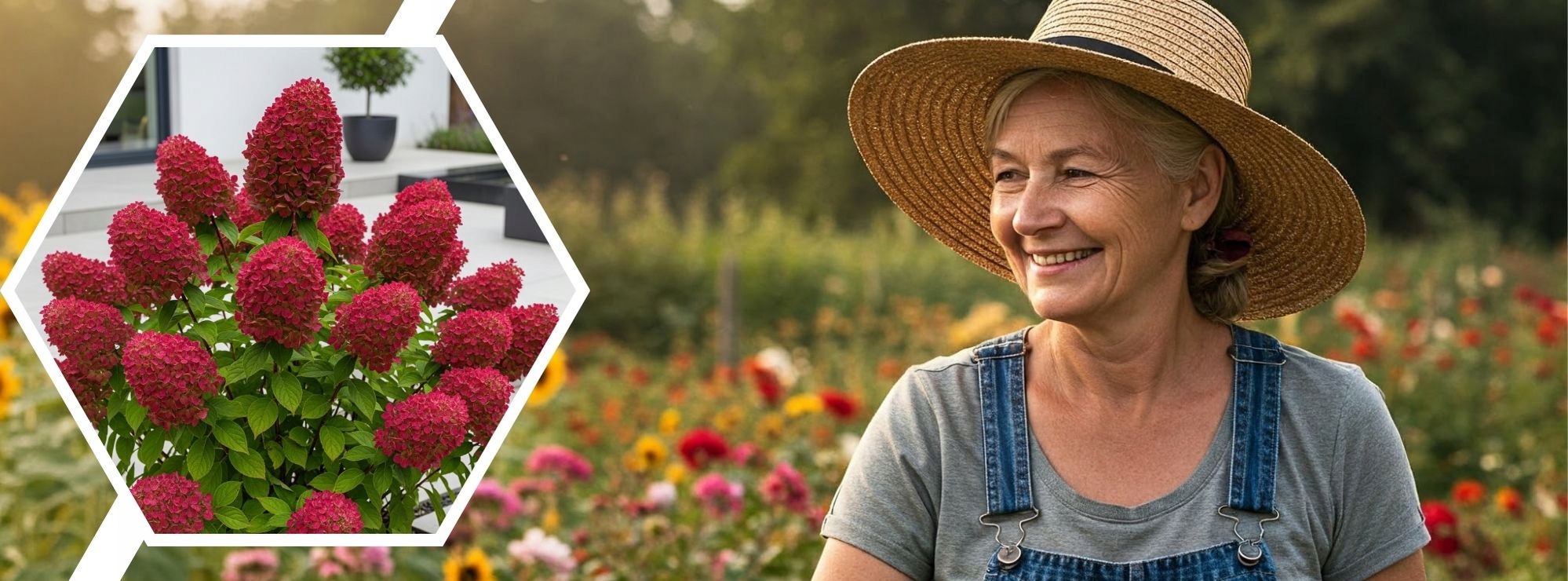 Ця унікальна різноманітність букетних гортензій вражає вражаючою метаморфозою суцвіття протягом сезону. Його конічні квіти спочатку розвиваються в кремово-білому відтінку, а потім беруть рожеві тони, щоб досягти інтенсивного червоного свіжого кольору в кінці літа. Завдяки цій барвистому перетворенню це унікальна прикраса саду з червня до осені. 4 Переважає сонячні або злегка затінені положення та родючі, злегка кислі та добре проникні ґрунти. Растично для морозів і легко вирощування, це чудово працює як пасьянс і в композиціях зі знижками.
