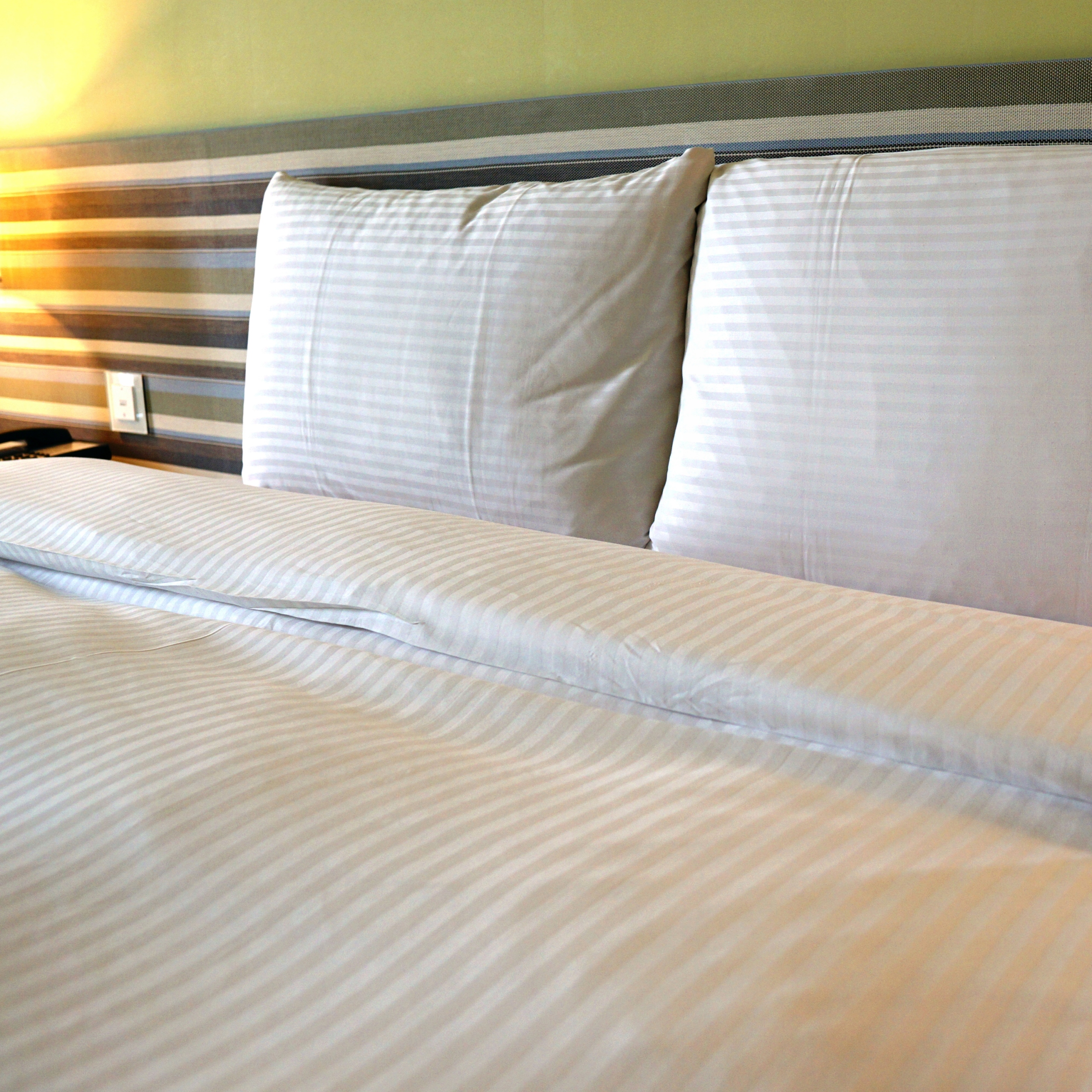⭐ Готельна постільна білизна має вбудовану готельну постільну білизну (30 см у ковдри та 20 см у подушці), що дозволяє швидко розміститися. змінено. Крім того, матеріал не кусається і не викликає потертостей. Елегантні тиснені смугишириною 2 см додадуть класу та елегантності будь-якій спальні.