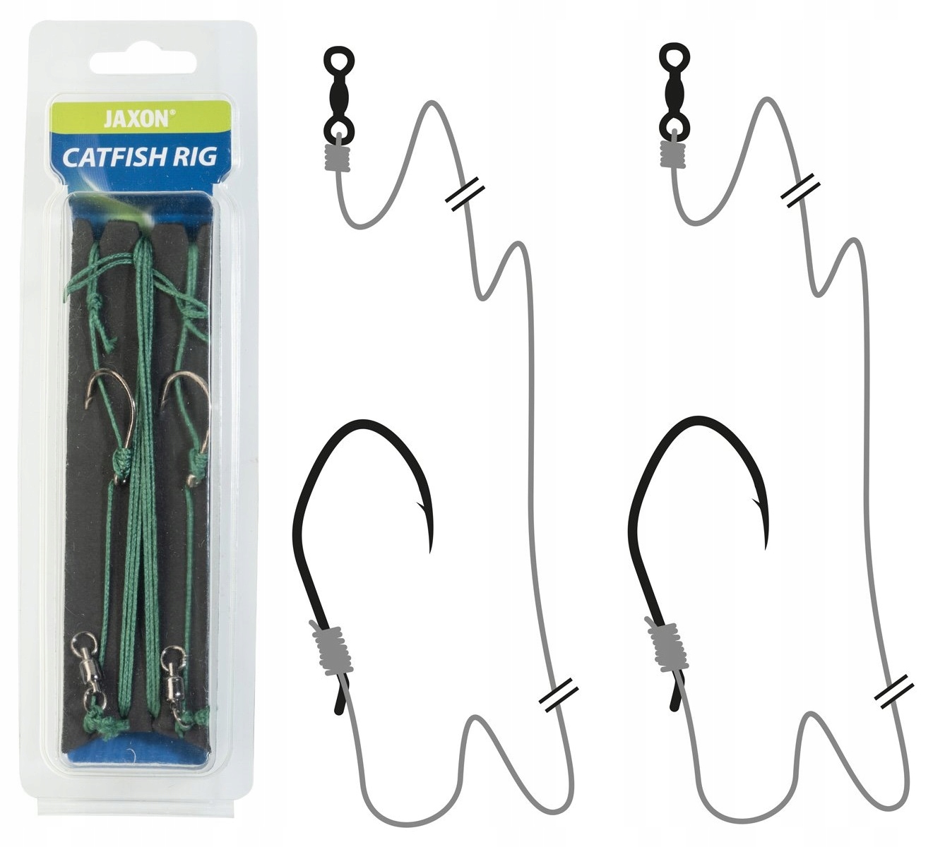 Готові набори для лову сома, зб. зроблені з міцних гачків і якорів і дуже міцної оплітки. Ідеально підходить для оснащення живої риби, мертвої риби або інших приманок для сома. Використання брязкальця в наборах сприяє залученню сома.