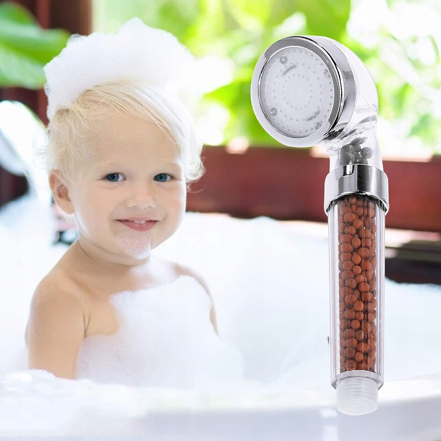 🚿🚿 Потужна фільтрація: негатив іонний фільтр очищає воду. Вбудована фільтрація негативних іонів з мінеральних перлин видаляє важкі метали, хлор, бактерії, борошно та забруднення, покращуючи якість води.