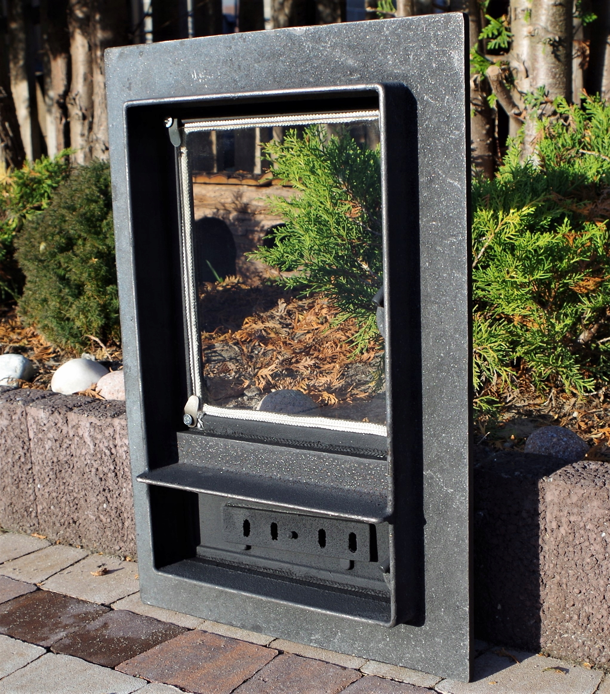ретро -ретро -ретро -двері ретро з теплостійким склом протягом 800 С. Двері використовуються для будівництва домашніх копалень, хлібних печей, камінів тощо