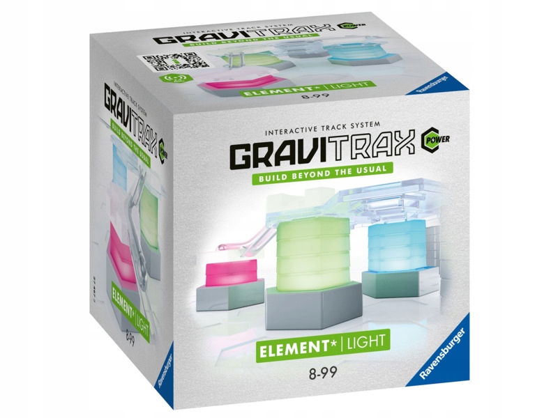 Доповнення Power Light додає барвисті світлові ефекти до кожної доріжки GraviTraxt! У набір входять 3 світлові колони, які можна комбінувати з прозорими блоками різної висоти, що дозволяє будувати динамічні маршрути на різних рівнях. Крім того, гравець може змінювати колір підсвічування одним натисканням кнопки, ви можете вибрати між червоним, зеленим, синім і білим або режим постійної зміни кольору.