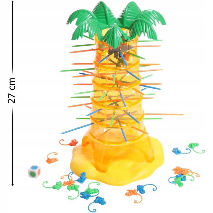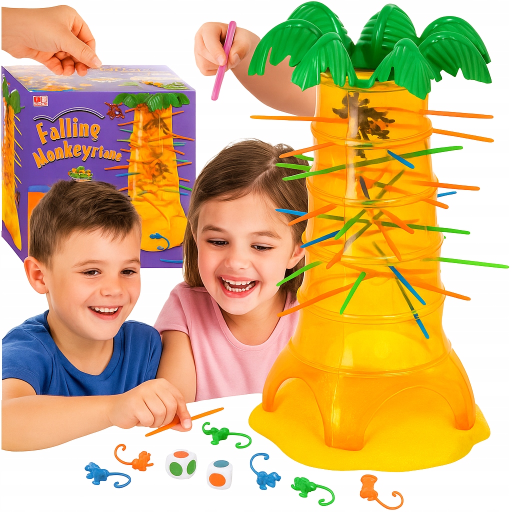 ⭐Ми пропонуємо гру FALLING MONKEYS GAME, ідеальну альтернативукомп'ютерним іграм. Чудова гра, яка розвиває дитячу спритність і концентрацію. Гравці вставляють різнокольорові палички в стовбур пальми, а потім кидають у пальму мавп, які зачіпляються хвостами за палички. Гравець кидає кубик із кольоровими полями. Колір, витягнутий кубиком, визначає колір палиці, яку гравець повинен витягнути з пальми. Хитрість полягає в тому, щоб переконатися, що коли ви витягнете палицю, жодна мавпа не впаде!Переможцем стає той, хто збере найменшу кількість мавп.