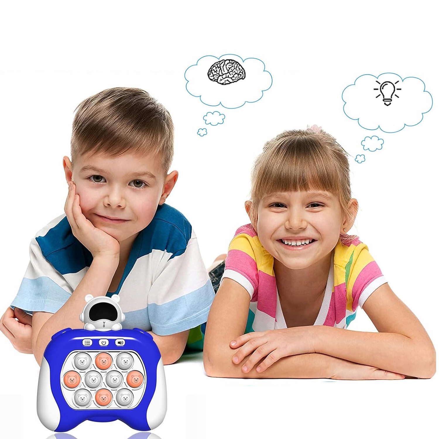 Іграшка-гра: наша найновіша вдосконалена версія ручної іграшки-бульбашки-бульбашки простіша та веселіша, ніж більшість ігрових іграшок. Діти розвиватимуть позитивне мислення, координацію рук і очей і тренуватимуть мозок в іграх, наповнених світлом і звуками, які сприятимуть їх сенсорному розвитку.