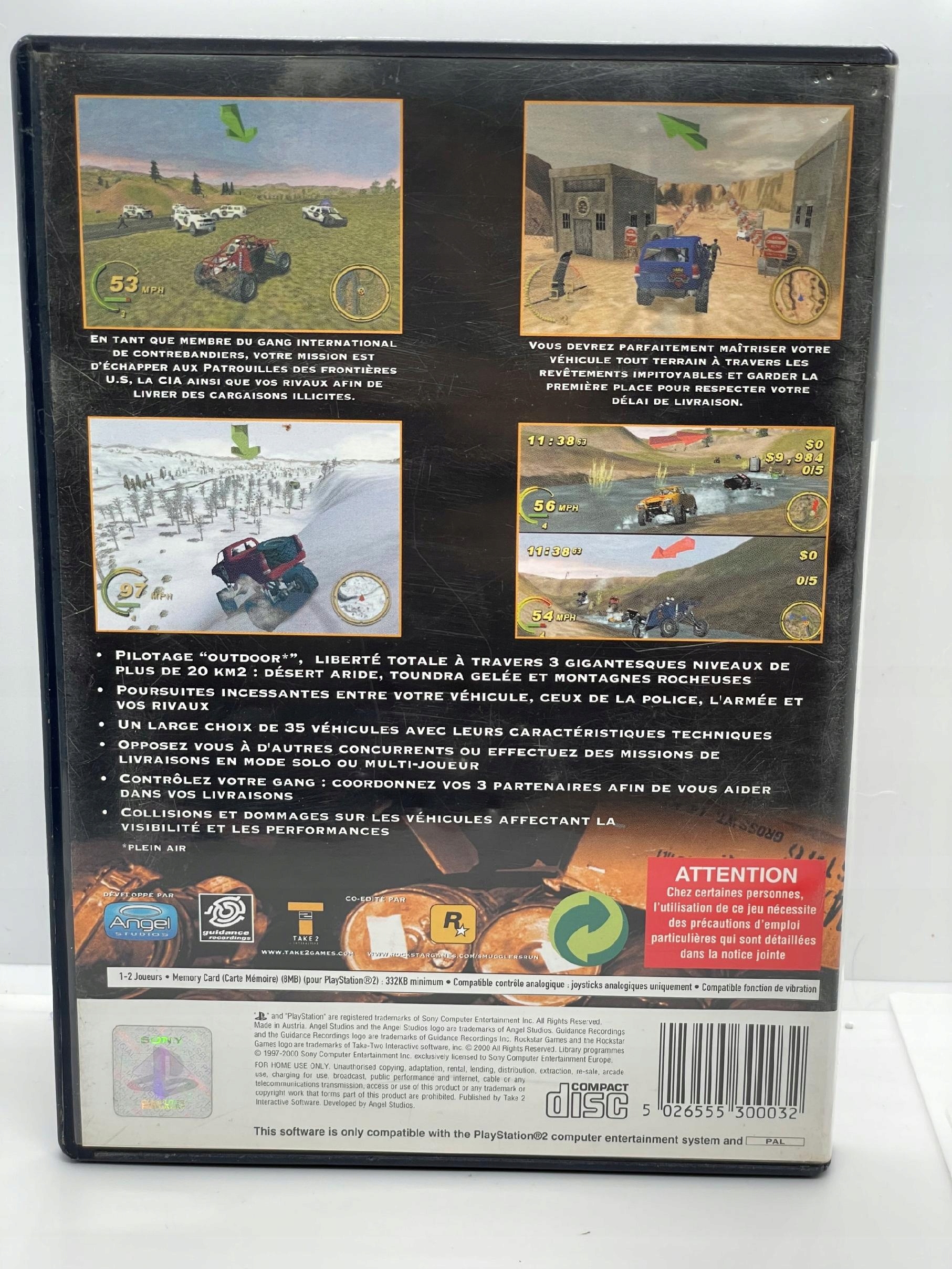 Пориньте в небезпечний світ контрабанди в грі Smuggler's Run на PlayStation 2. Транспортуйте нелегальні товари та станьте мішенню для правоохоронних органів, контрабандистів і навіть військових США.
