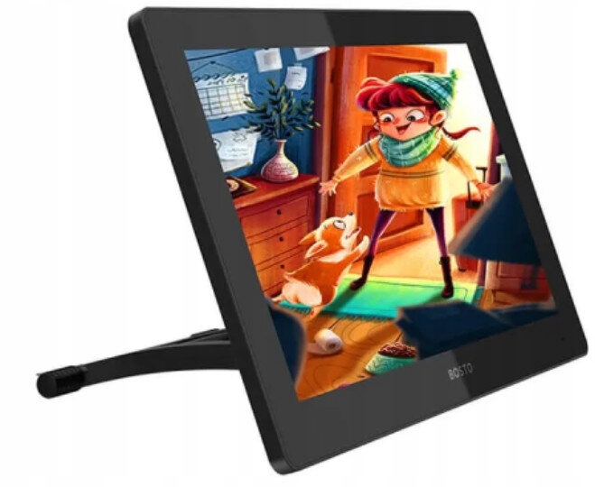 Неважливо, чи ви графічний дизайнер, чи тільки плануєте ним стати. Планшет Bosto Studio 16Hd — хороший вибір для кожного, незалежно від його кваліфікації. Модель Studio 16Hd — це графічний планшет All-in-One з РК-екраном і попередньо встановленою операційною системою Windows 10. Переваги: Автономність — планшет працює автономно — це комп’ютер із власним процесором, жорстким диском і RAM Величезна робоча поверхня - екран з діагоналлю 15, 6", співвідношення сторін 16:9 і робоча поверхня 344,16 мм х 193,59 мм дозволяє комфортно працювати. Дисплей з роздільною здатністю FHD 1980 x 1080 px - деталізація зображення дозволяє створити точну графіку. 1980 x 1080 пікселів — типова роздільна здатність дисплеїв ноутбуків. 16,7 мільйонів кольорів Standard True Color і 8-бітна глибина кольору запобігають смугам Gamut, тобто кольорова гама 120% sRGB - охоплення колірного простору 120% sRGB забезпечує дуже хороше відтворення кольорів на пристроях і в програмному забезпеченні, яке використовує участь в обробці графіки (наприклад, монітор, принтер, планшет, цифрова камера) Широкі кути огляду - кути огляду: 178° (89°/89°) H (горизонтально), 178° (89°/89°) V (вертикаль) забезпечують надійне відображення контрасту та кольори незалежно від кута огляду екрана Сумісність - з планшетом можна працювати з графічними програмами, такими як: Photoshop, CorelDRAW, Gimp, Krita, Sketchbook, MediBang Paint Pro Ергономіка - протиковзка підставка з регульованим кутом нахилу в діапазоні 20° - 80° забезпечує кращий комфорт малювання та зменшує біль у зап'ясті після довгих годин напруженої роботи, адаптуючись до поточних потреб. Екран захищений загартованим склом - скло захищає чутливий екран від пошкоджень, забезпечуючи додатковий захист Дизайн, приємний для око - мінімалістичний і в той же час естетичний дизайн Реакція на натиск стилуса - завдяки 8192 LPS (рівень чутливості до натискання) планшет динамічно реагує на натиск пера Великий діапазон нахилу стилуса - екран реагує на стилус під кутом до 60°. Вічно живе перо - бездротовий стилус Bosto, якому не потрібні батареї чи зарядка.